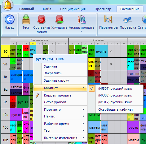 Если Вы щелкните правой кнопкой мышки, Вы также можете определить и кабинет для этого урока: