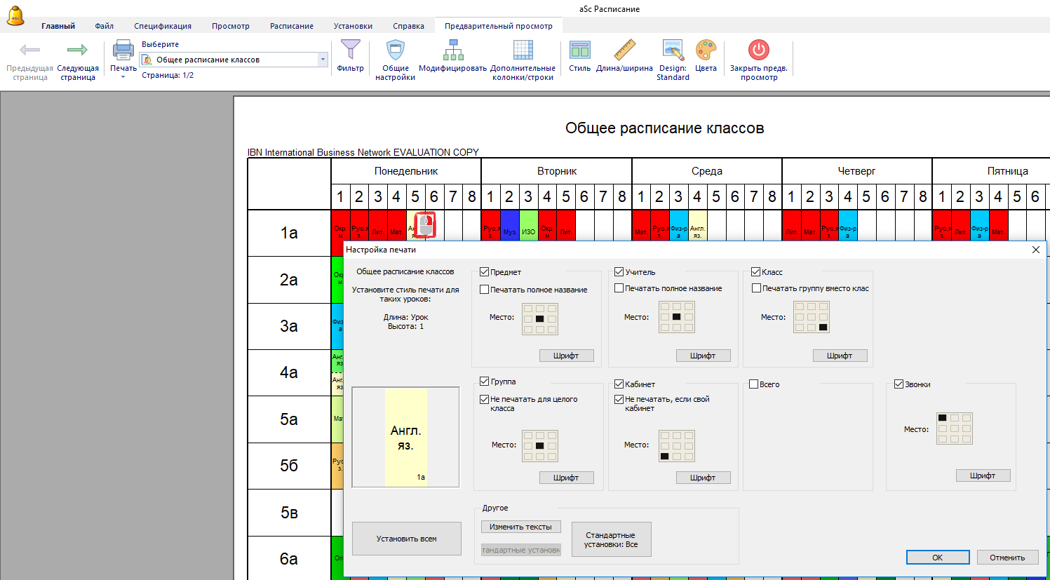 Помните, что Вы настраиваете только один тип карточек уроков (напр. только длиной в 1 период). Это позволит иметь различные расположение текстов и размер шрифтов для одиночных или двойных уроков.