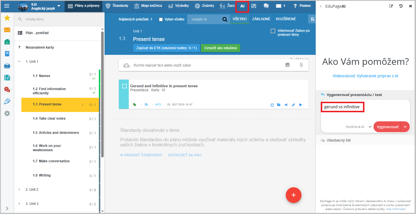 V module Plány a prípravy kliknite na AI v hornom menu a napíšte tému.