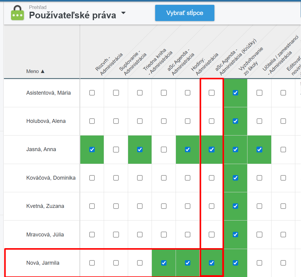 Ak sa stĺpec s požadovaným modulom nenachádza v zozname, môžete ho pridať stlačením tlačidla Vybrať stĺpce. Zaškrtnite moduly, ktoré chcete, aby sa vám v prehľade zobrazovali.