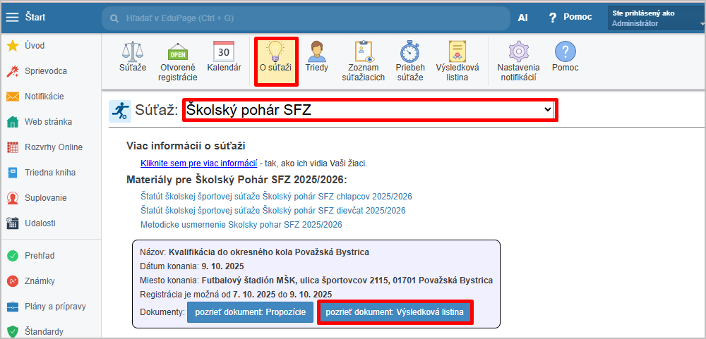 Administrátor - Ako vložím DOKUMENT - výsledkovú listinu v PDF pre športovú udalosť/event?