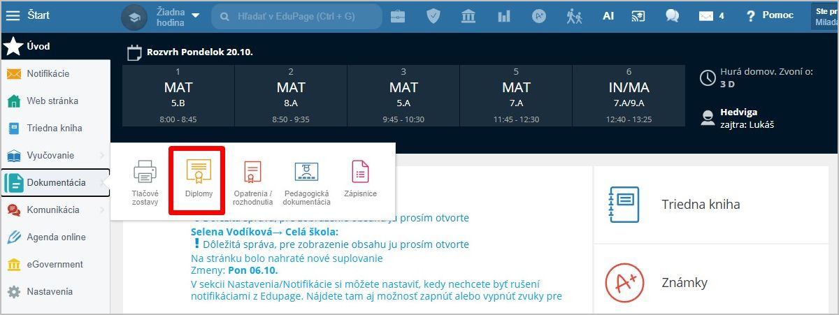 Ako pripraviť v EduPage diplomy pre žiakov?