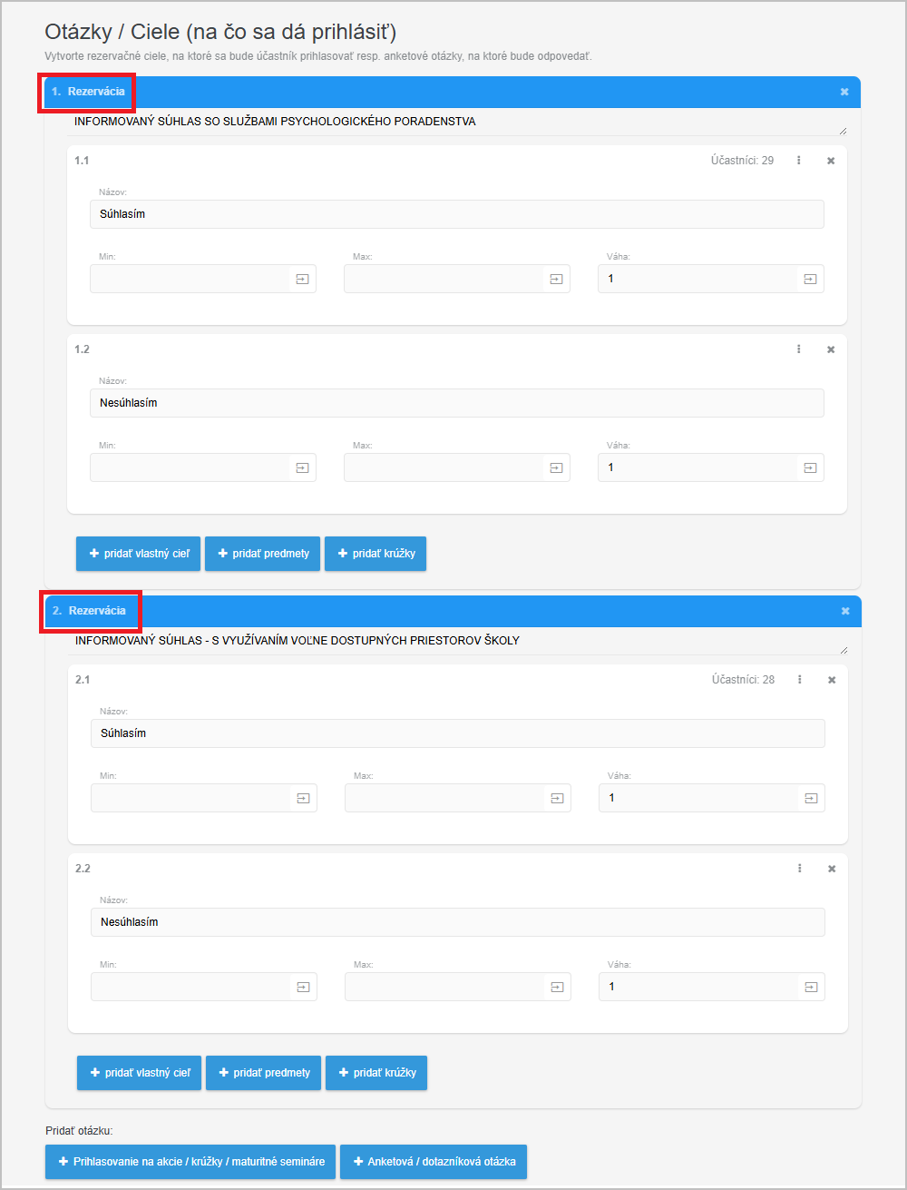 Každý súhlas je jedna rezervácia a každá rezervácia má dva ciele: súhlasím a nesúhlasím.
