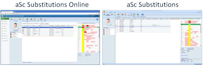 Modul aSc Suplovanie bol portovaný do HTML verzie, ktorá môže bežať v prehliadači z ľubovoľného miesta. Potrebujete iba heslo a možete vytvárať suplovanie z ľubovoľného počítača, doma alebo v škole. Alebo aj z tabletu s internetovým pripojením. Program pracuje rovnakým spôsobom ako štandardné aSc Suplovanie vo Vašom PC, takže sa môžete rozhodnúť, ktorú verziu suplovania chcete použiť.