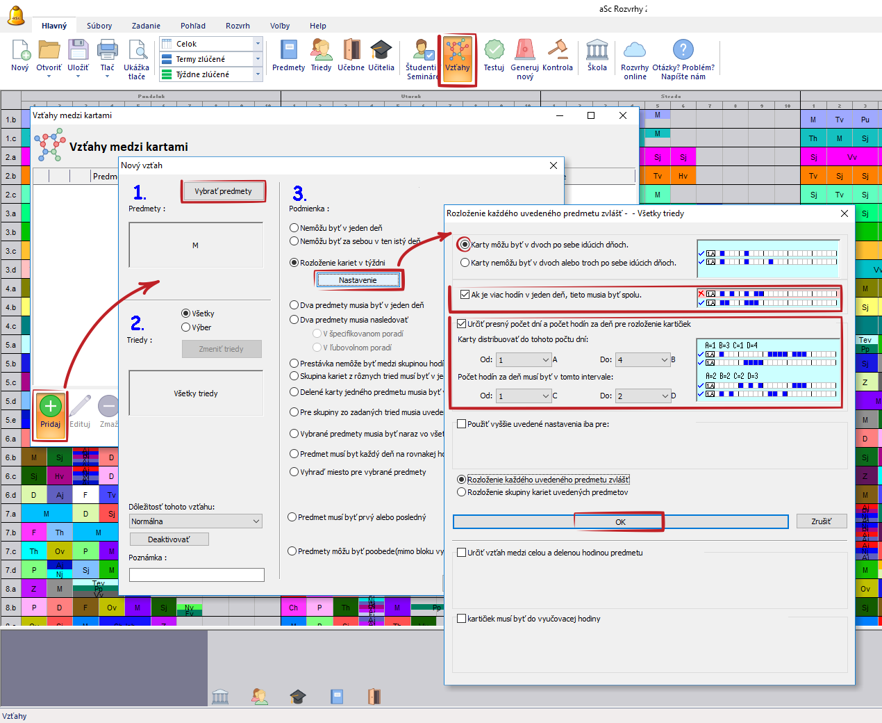 2. Potom zadajte vzťahy medzi kartami tak ako na tomto obrázku: