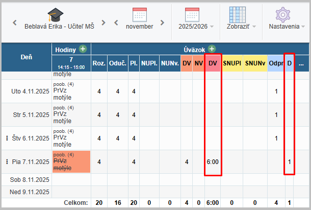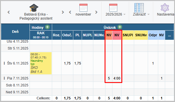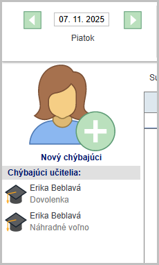 p. Beblavá si chce uplatniť z konta učiteľky DV a z konta asistentky NV. Do suplovania zadáme oba typy chýbania (alebo máme vytvorené dve žiadosti, ak nie je potrebné suplovanie).