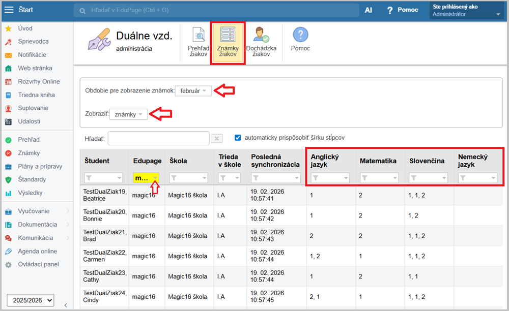 Potom v module Duálne vzdelávanie kliknite na sekciu Známky žiakov.