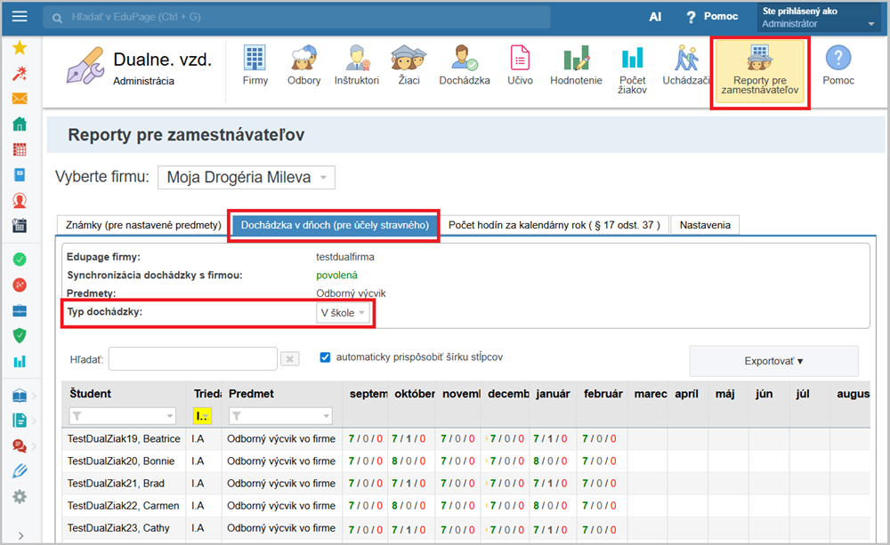 Avšak firma / zamestnávateľ potrebuje mať k dispozícii informácie o ich dochádzke na predmet odborný výcvik.
