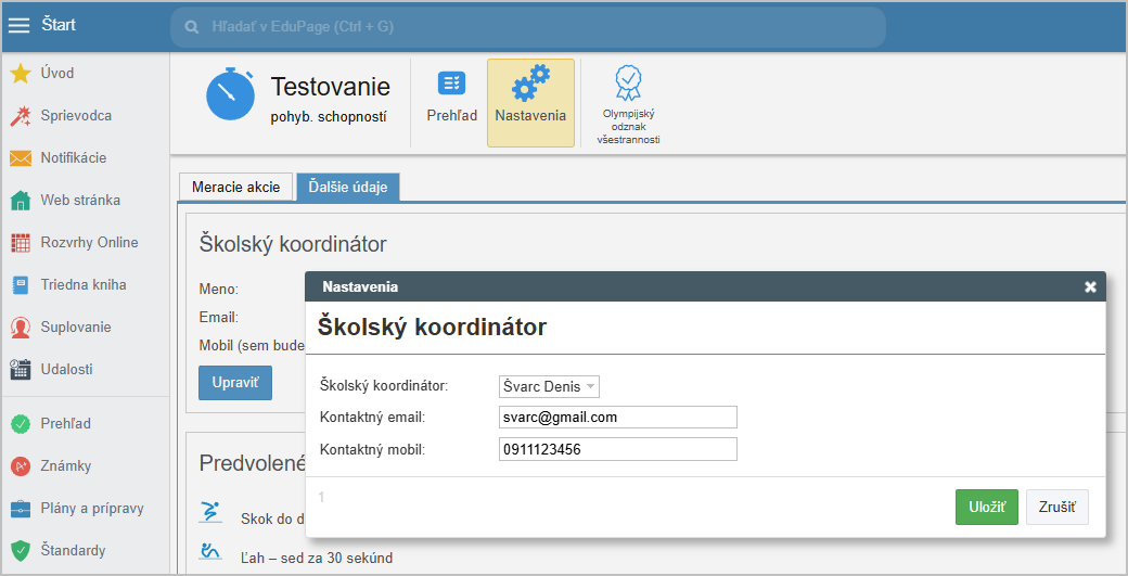 Vyberte meno učiteľa, zadajte jeho mail a telefónny kontakt.