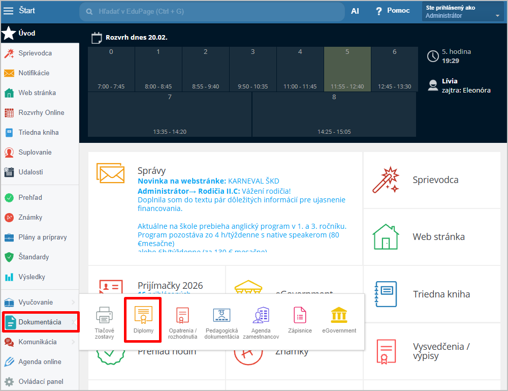 V ľavom menu zvoľte Dokumentácia a Diplomy.
