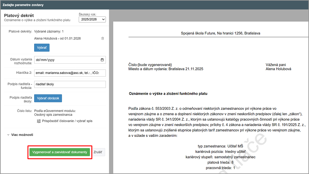 Platový dekrét sa automaticky zaeviduje do registratúry, nemusíte nič viac robiť.