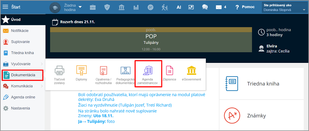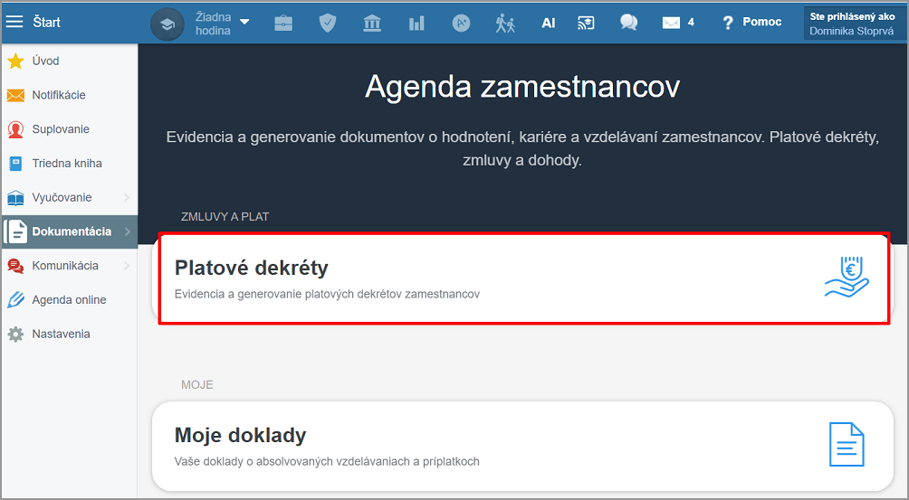 V ľavom menu kliknite na Dokumentácia/ Agenda zamestnancov.