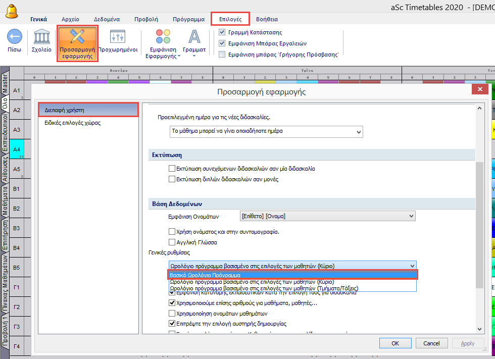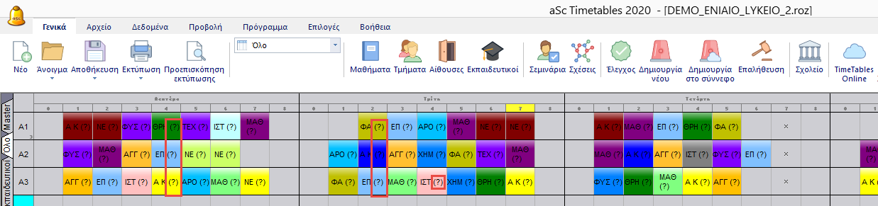 Αυτό μπορεί να λυθεί αλλάζοντας την δημιουργία του ωρολογίου προγράμματος σε “Βασική”.