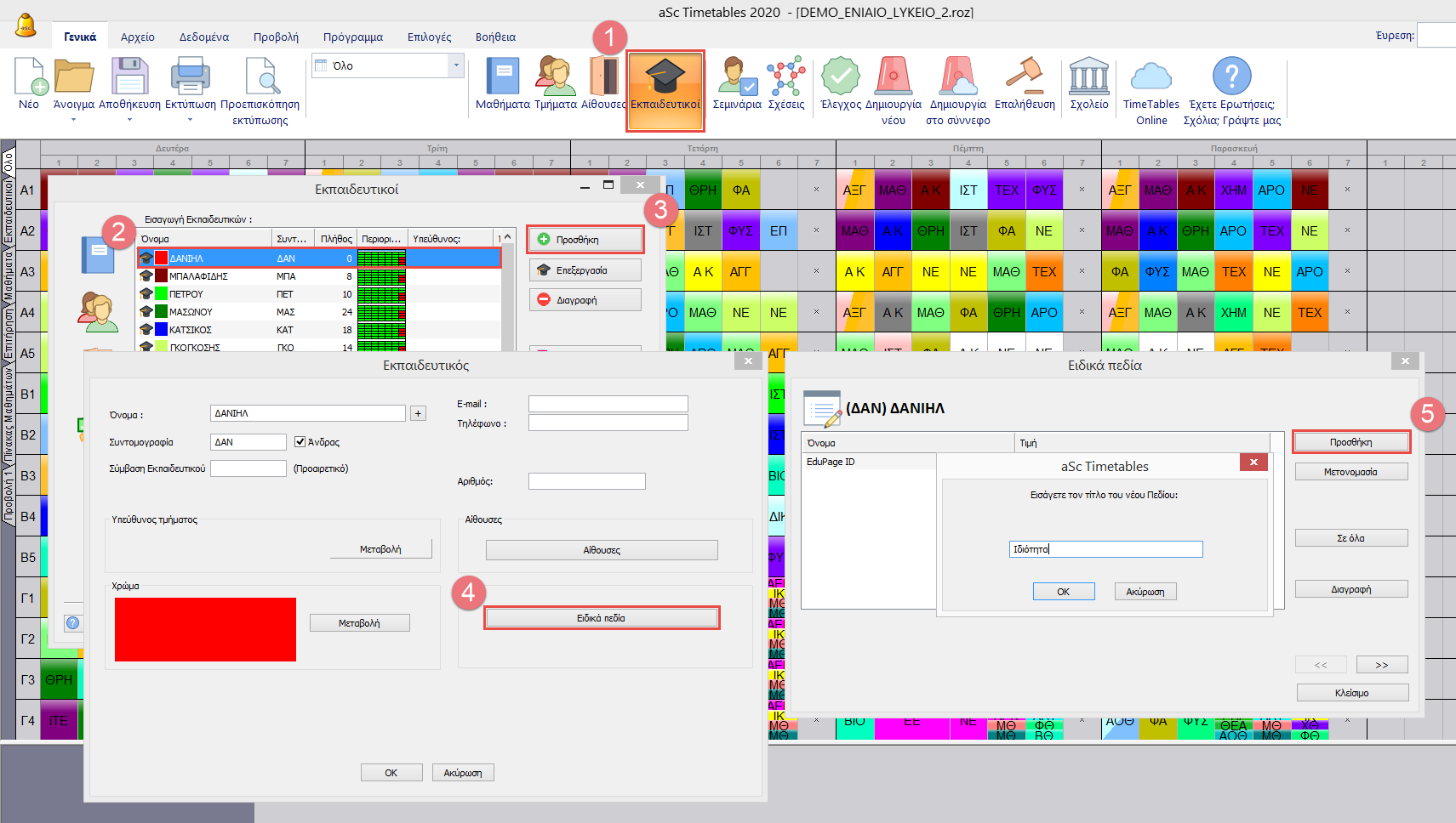 Μπορείτε να ορίσετε και να εισάγετε τα δικά σας πεδία για κάθε εκπαιδευτικό, αίθουσα ή μάθημα.