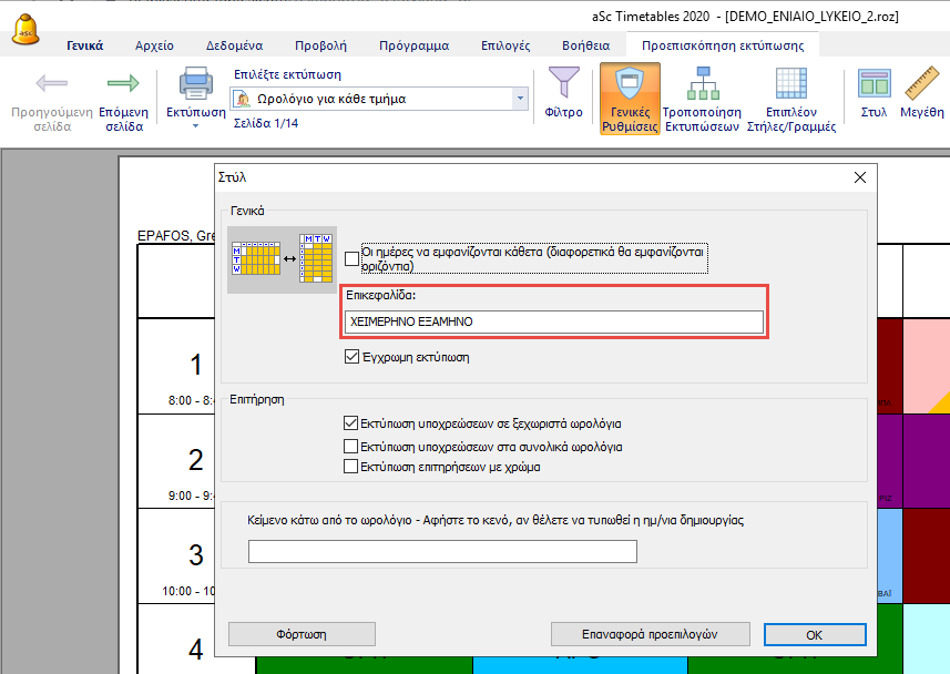 Το κείμενο της επικεφαλίδας ορίζετε στον διάλογο.